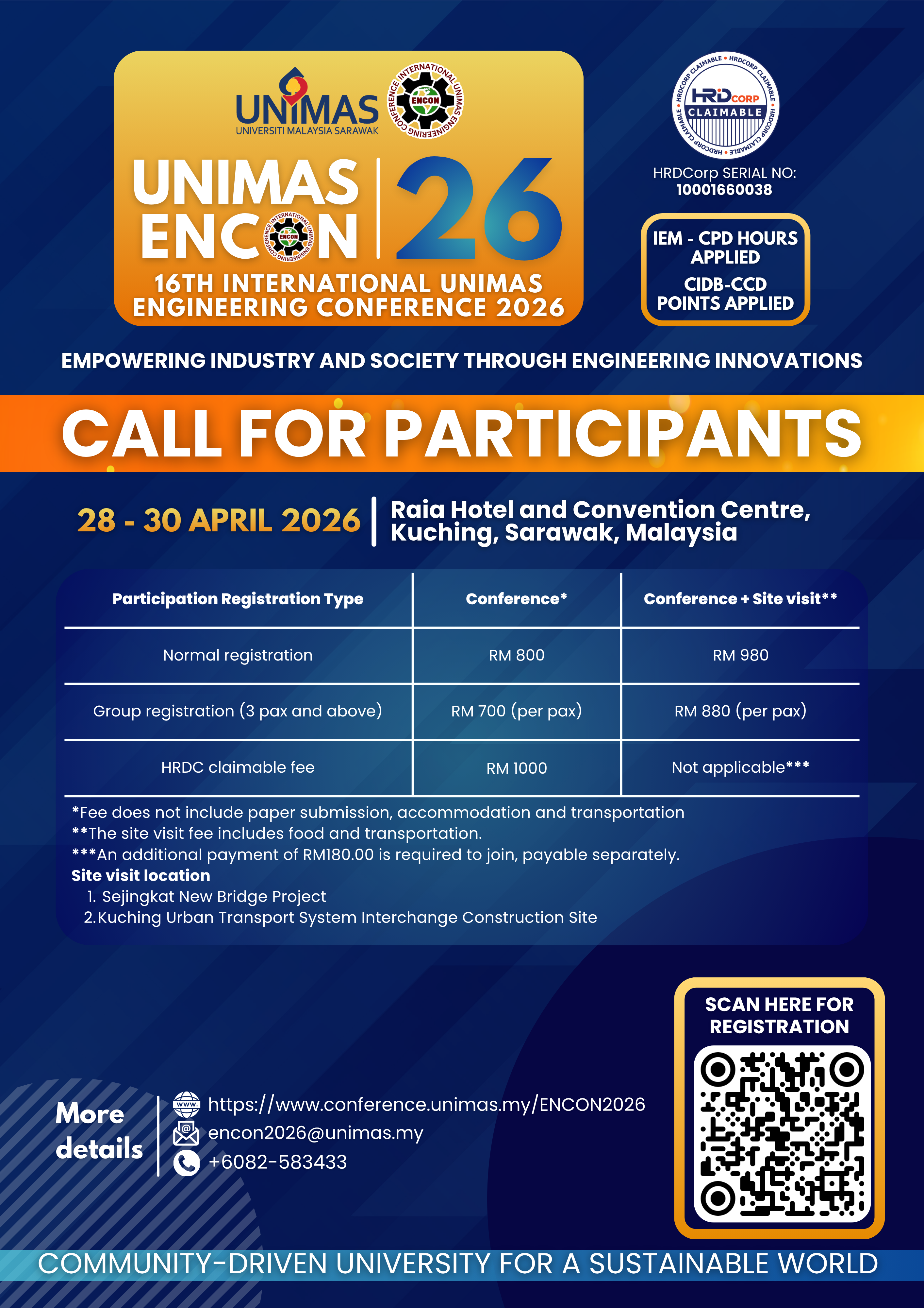 The 16th International UNIMAS Engineering Conference 2026 (EnCon2026) will be held on the 28-30 April 2026 at Raia Hotel and Convention Centre
